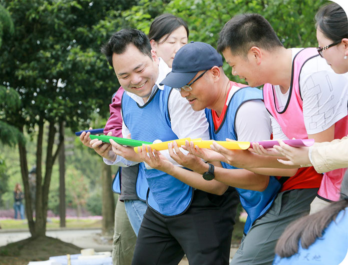 午餐過后,短暫休整,一場(chǎng)別有風(fēng)味的午間暖場(chǎng)拉開了帷幕,鴨子過河、猛虎下山,風(fēng)趣搞笑的表演再次把大家的熱情提升了起來,激情滿滿的進(jìn)入本次拓展活動(dòng)的燒腦環(huán)節(jié)—驛站傳書;